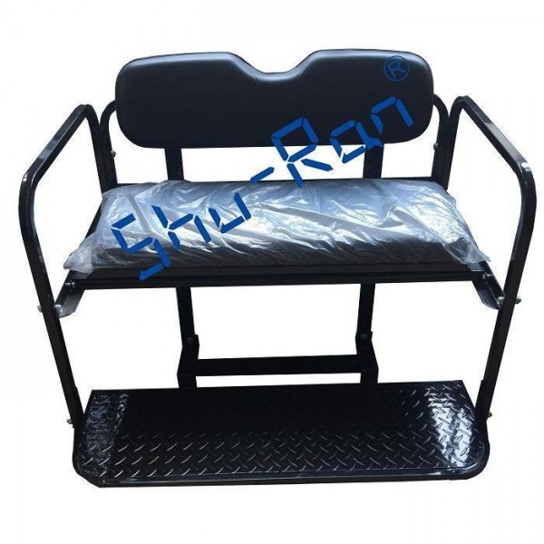 เบาะนั่งแบบพลิกด้านหลังพร้อมโครงเหล็ก - เบาะสีดำ สำหรับรุ่น EZGO RXV ชุดอุปกรณ์เหล่านี้ได้รับการออกแบบมาเพื่อความปลอดภัยและการใช้งาน และสร้างจากวัสดุที่ดีที่สุด