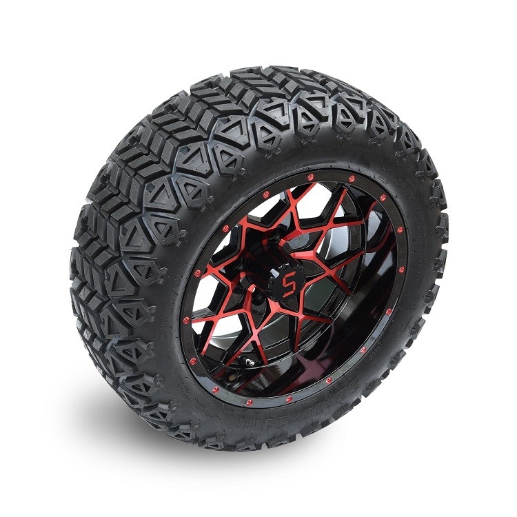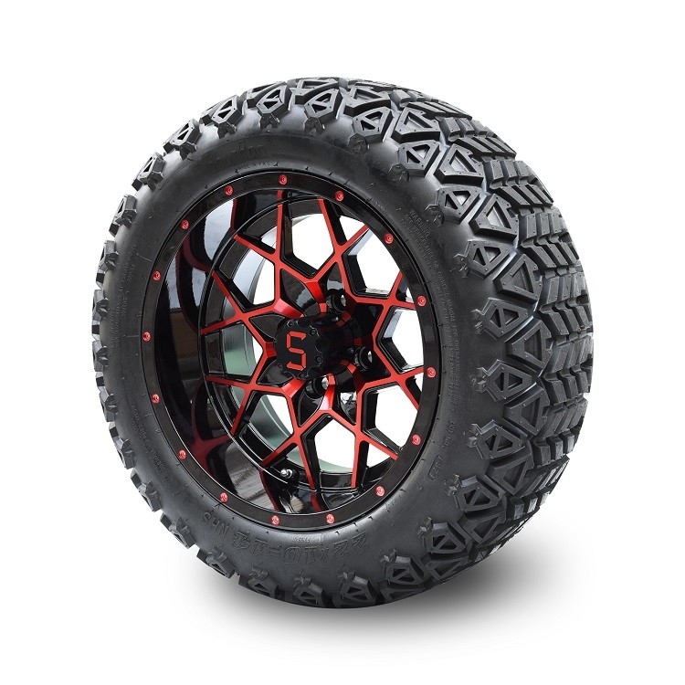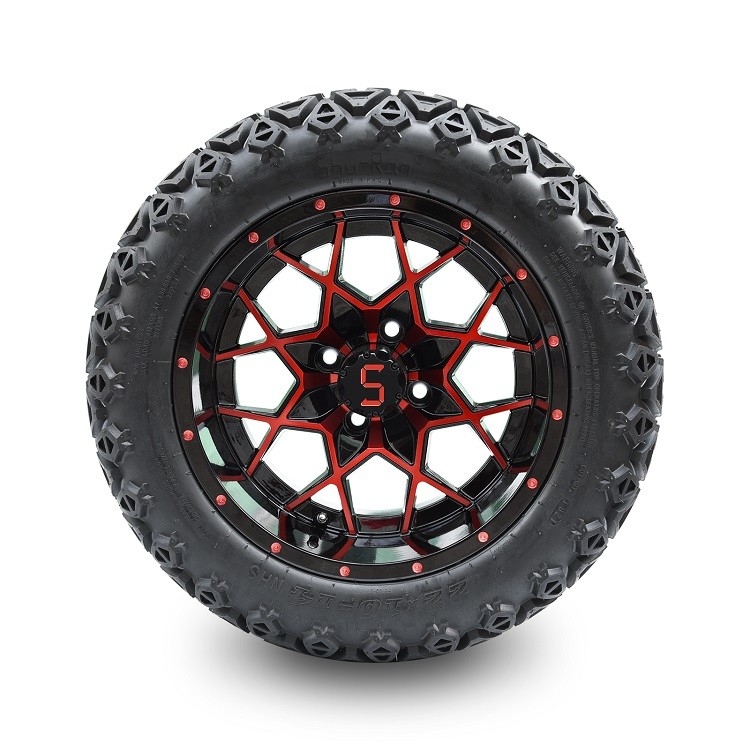 ชุดล้อรถกอล์ฟ 14 นิ้ว สีแดง/ดำเงา พร้อมยางขนาด 22 นิ้ว