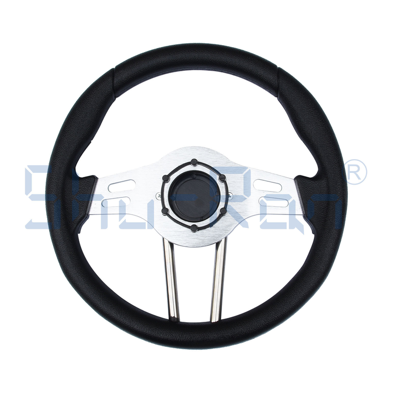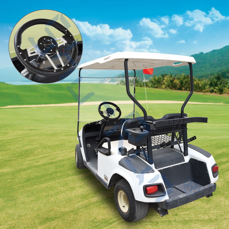 กว้างของล้อเลี้ยวนี้เป็นธรรมเนียม 13 นิ้วและจับสีดํากับสเปคอลูมิเนียมแปรง ล้อเลี้ยวง่ายที่จะติดตั้งบนรถคลับ EZGOและ Yamaha พร้อมแอดป์เตอร์ตามสั่ง ซึ่งขายแยกกันปุ่มคอร์นมีเป้าหมายเพื่อความสวยงามเท่านั้น