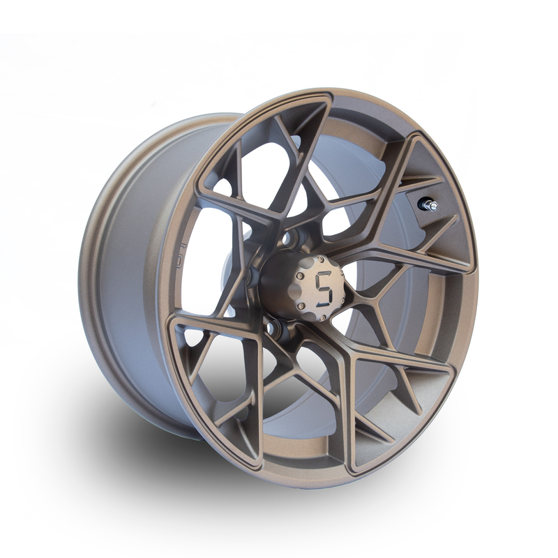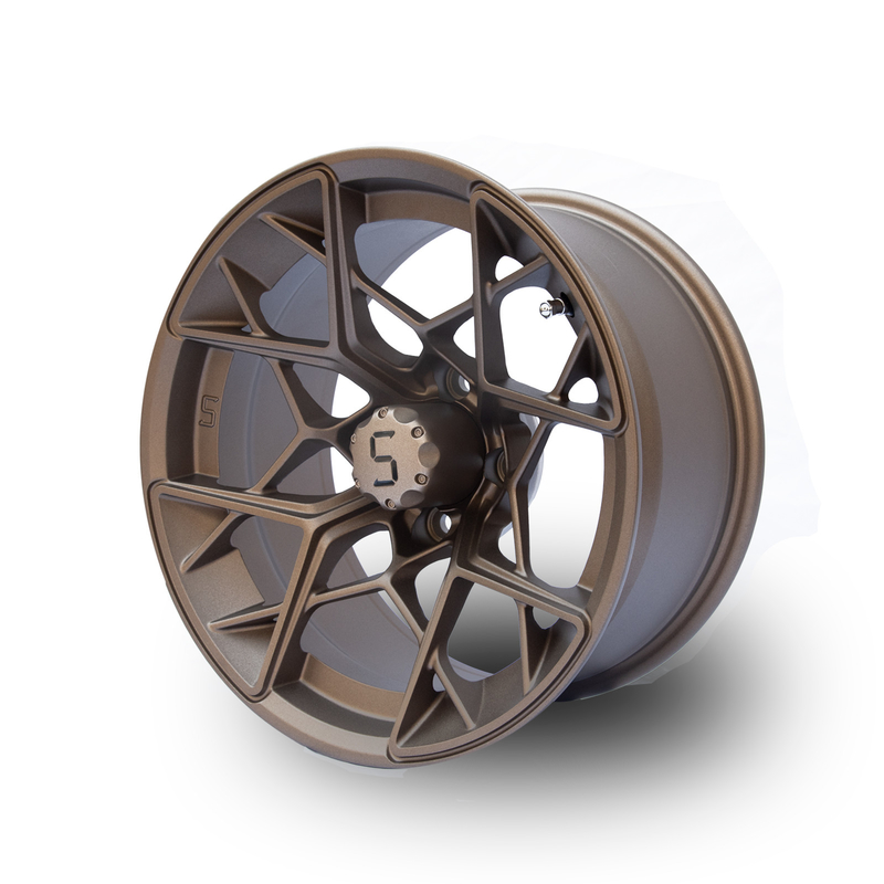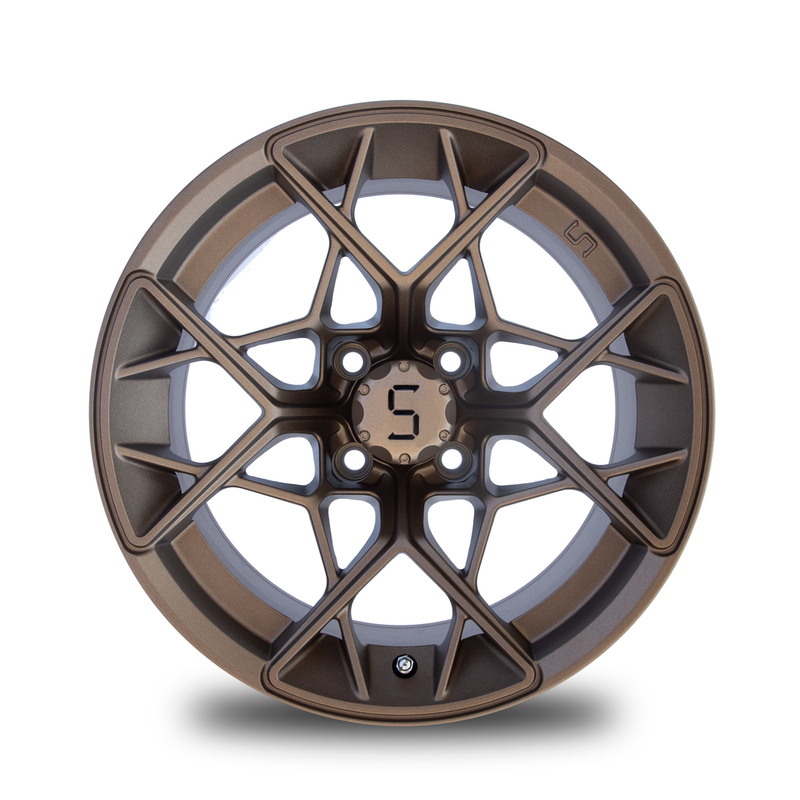 ล้อกอล์ฟ 14 นิ้ว ล้ออลูมิเนียมสีบรอนซ์ พร้อมฝาครอบดุมล้อ 4x4 (101.6 มม.) รูปแบบโบลท์